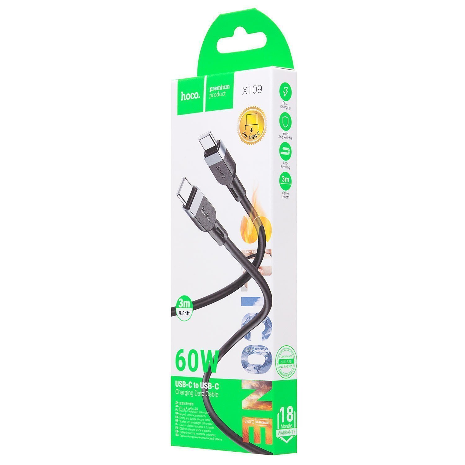 Кабель Type-C - Type-C Hoco X109 PD 60W 300см 3A (black)