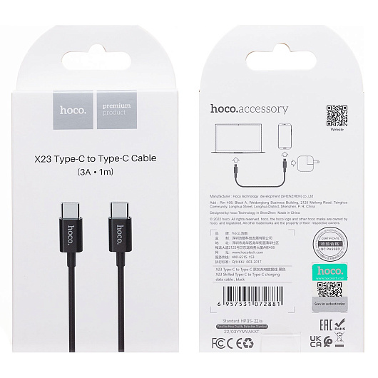Кабель Type-C - Type-C Hoco X23 Skilled 60W 100см 3A (white)