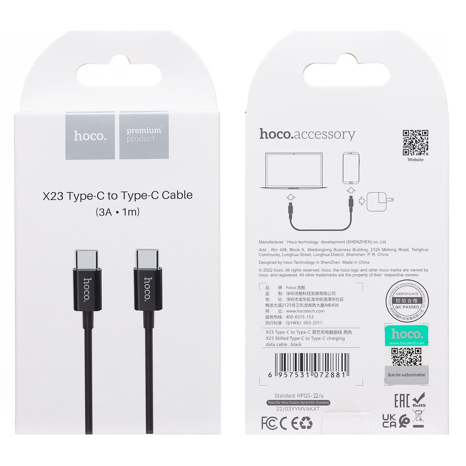 Кабель Type-C - Type-C Hoco X23 Skilled (повр. уп.) 60W 100см 3A (black)