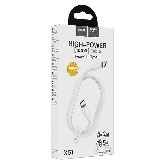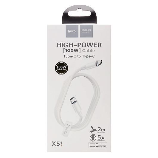 Кабель Type-C - Type-C Hoco X51 High-power 100W 200см 5A (white)