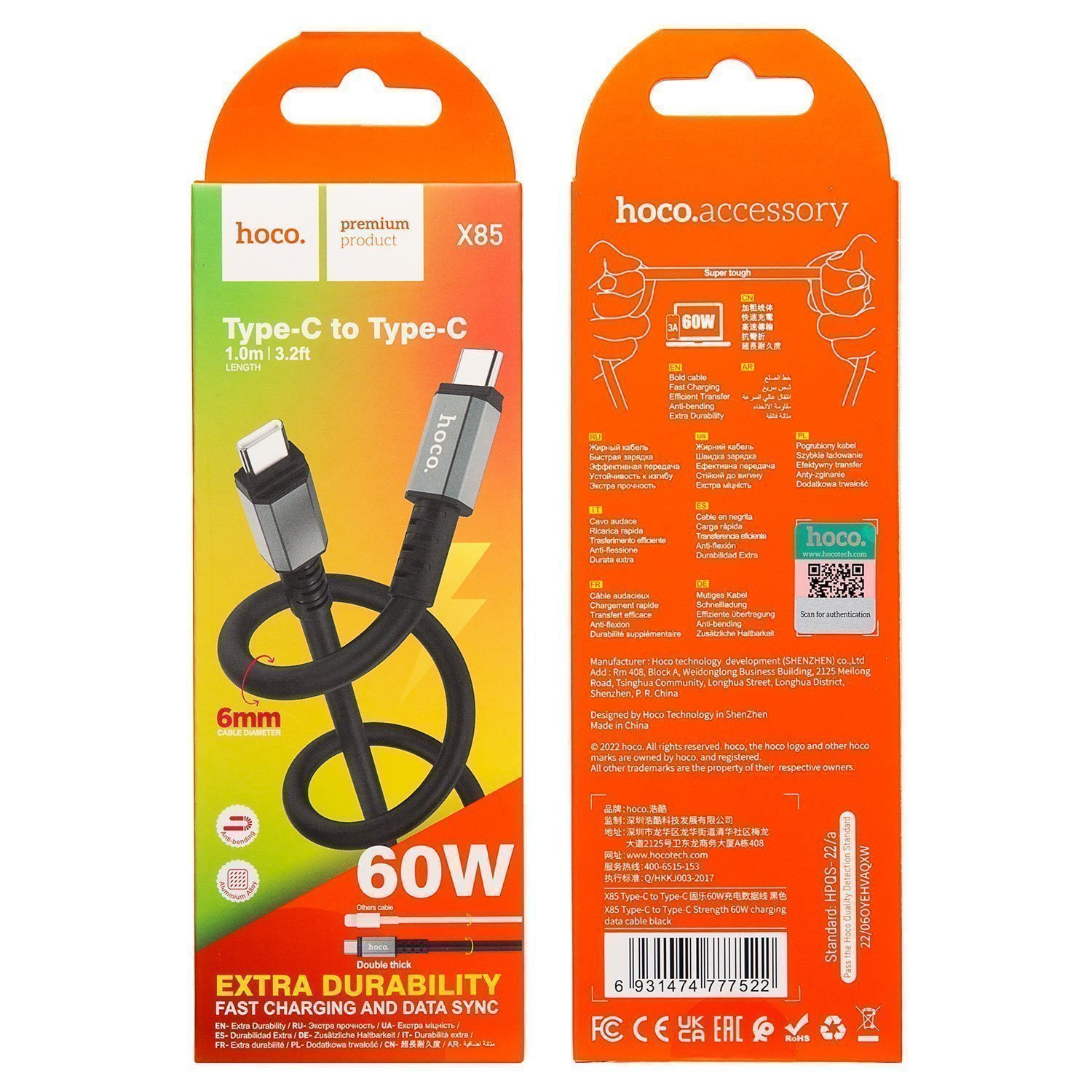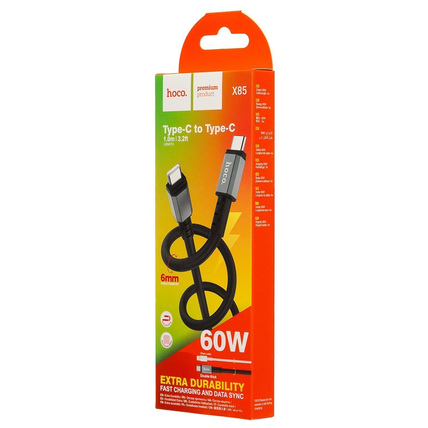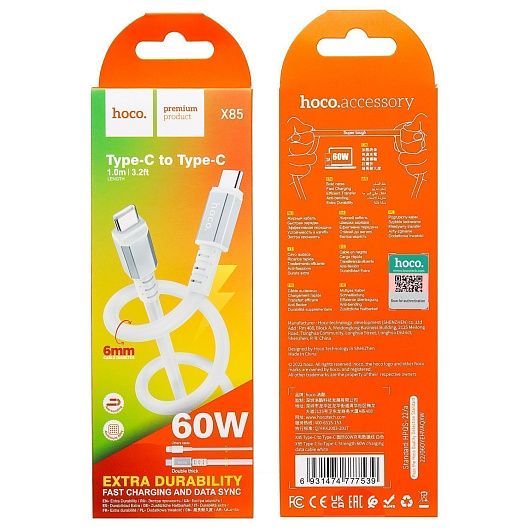 Кабель Type-C - Type-C Hoco X85 60W 100см 3A (black)