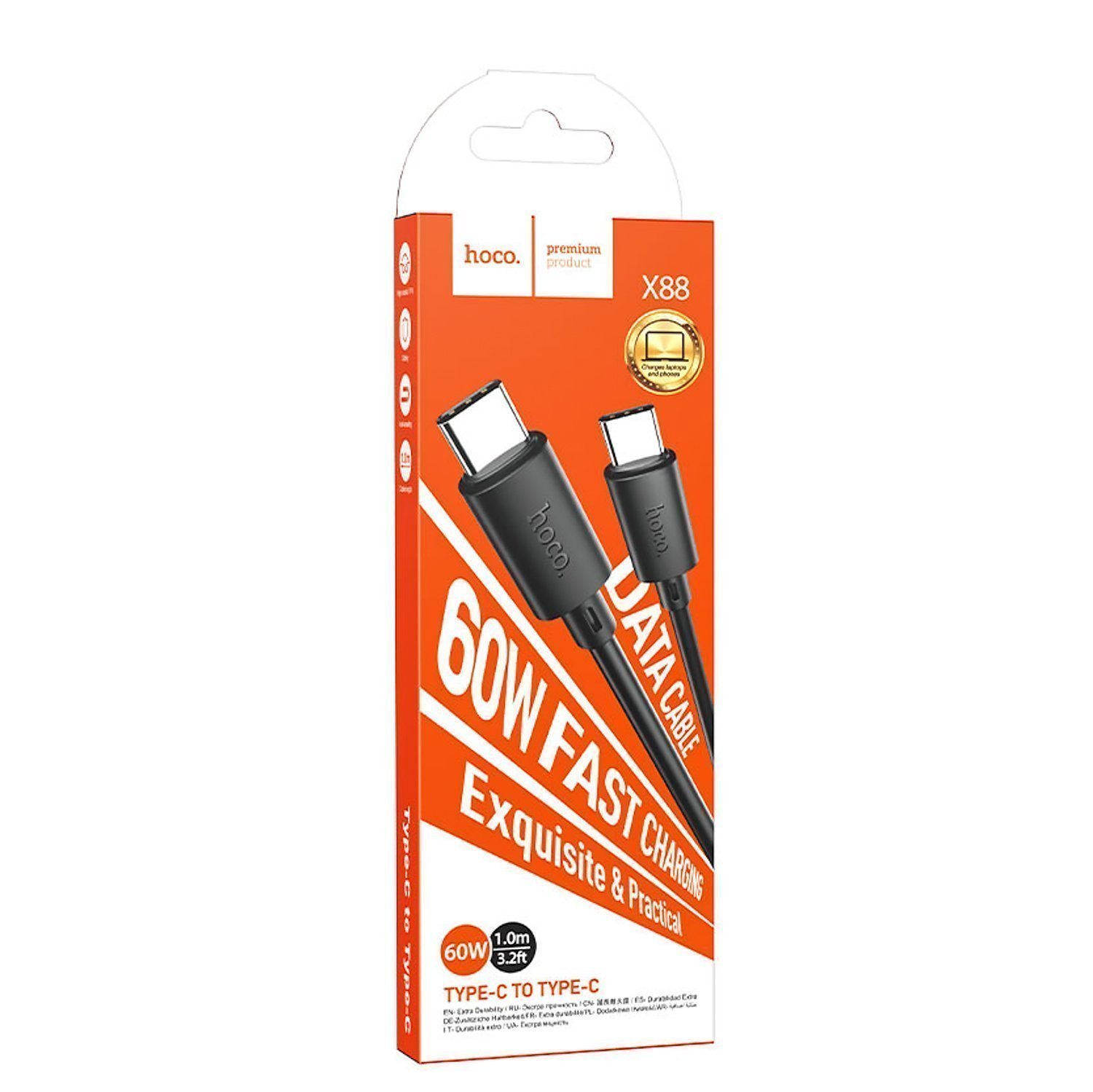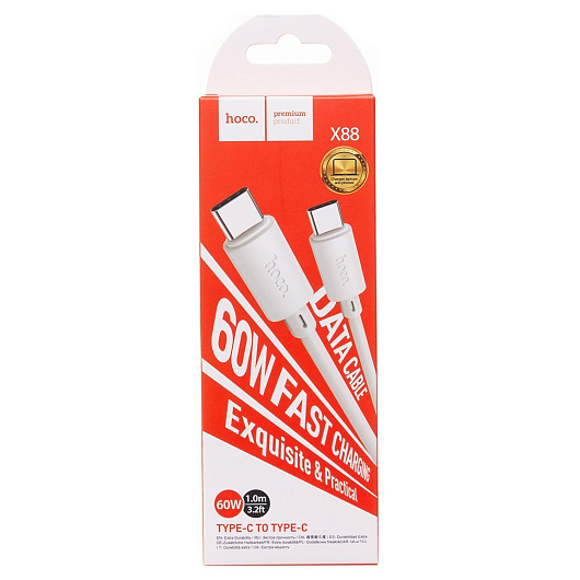 Кабель Type-C - Type-C Hoco X88 60W 100см 3A (white)