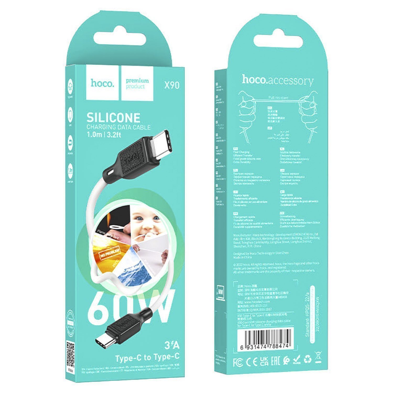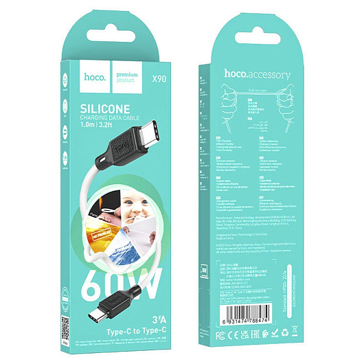 Кабель Type-C - Type-C Hoco X90 Cool PD 60W 100см 3A (white)