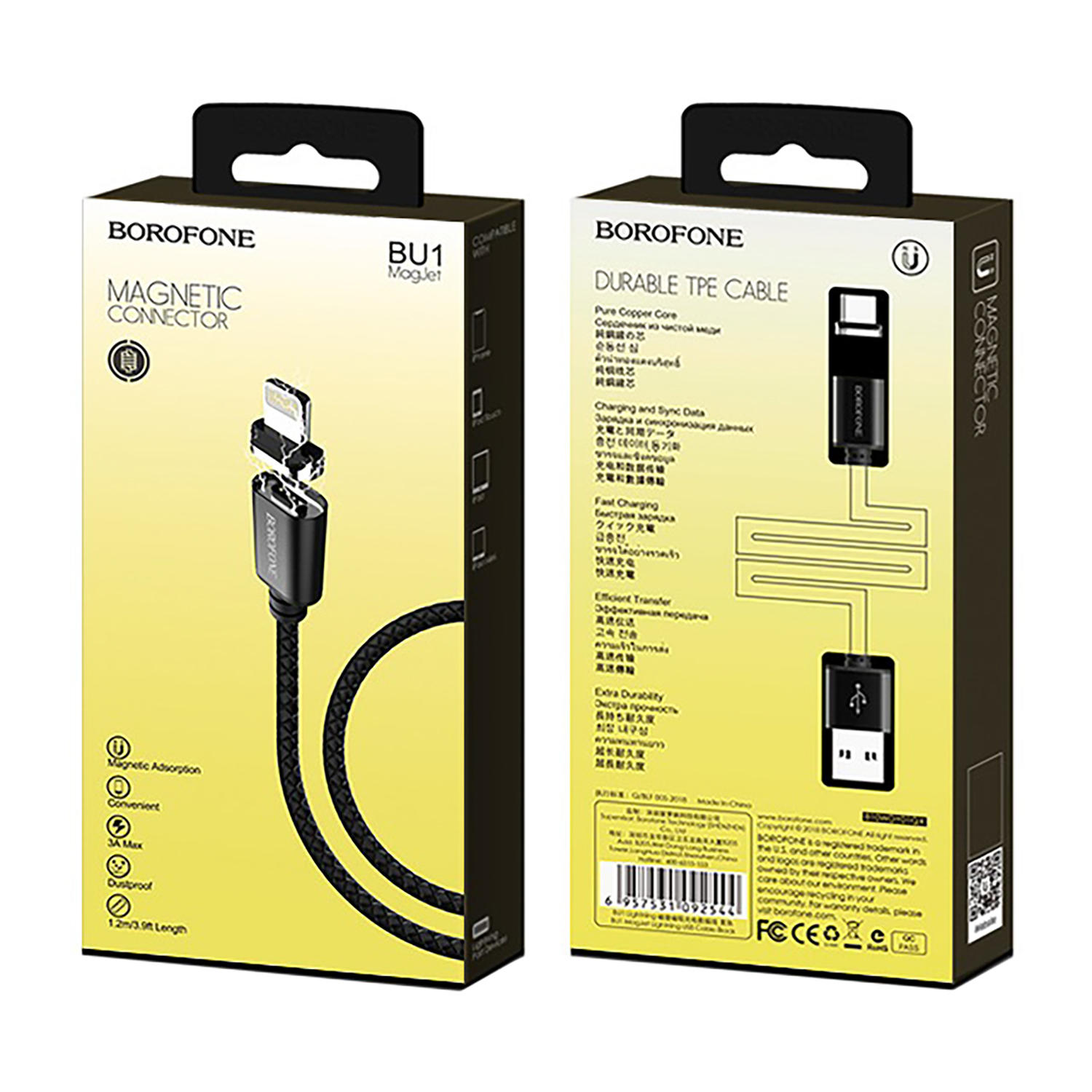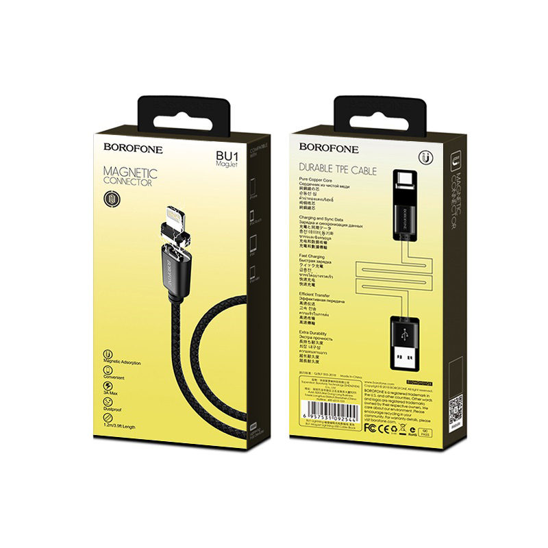 Кабель USB - Apple lightning Borofone BU1 магнитный 15W 120см 3A (black)
