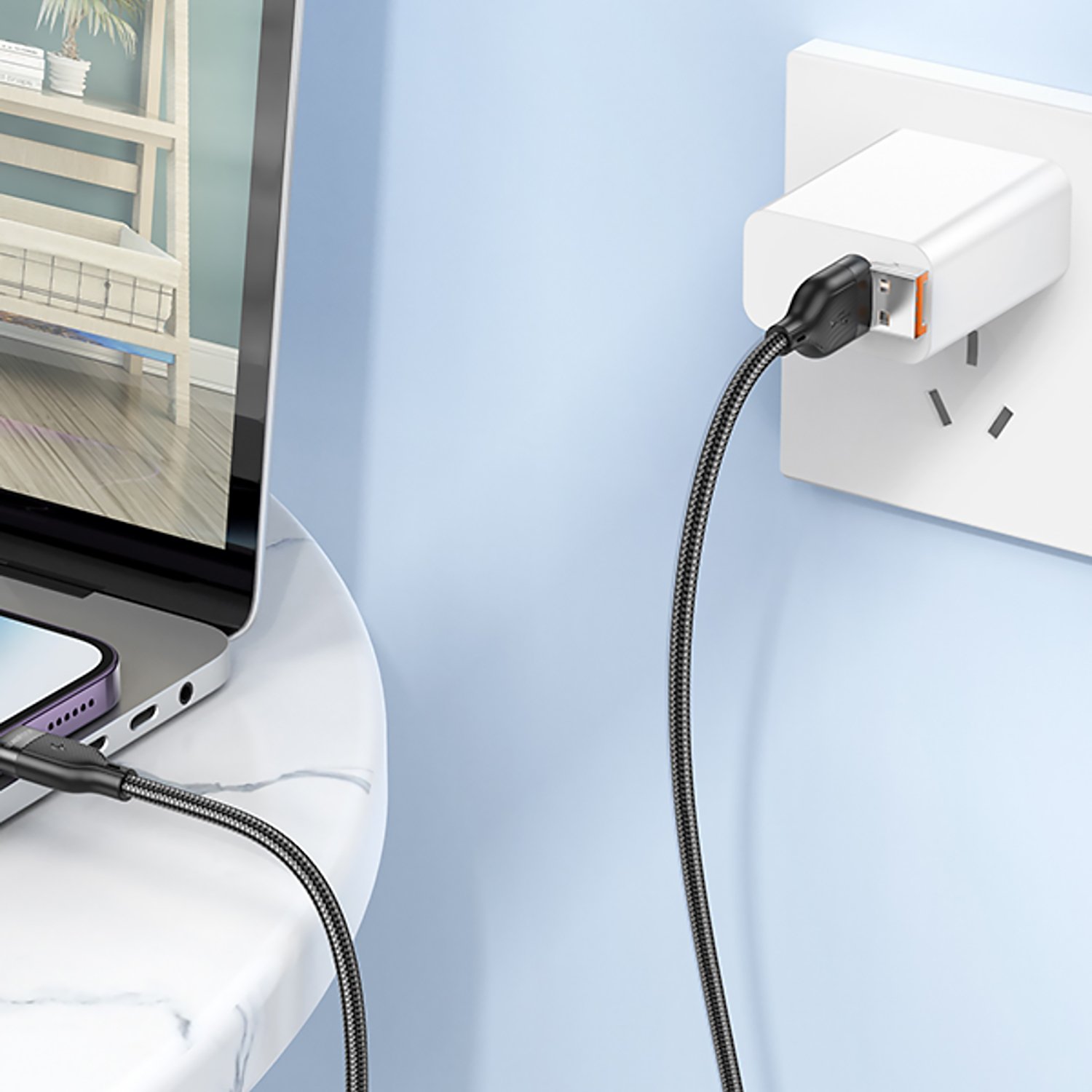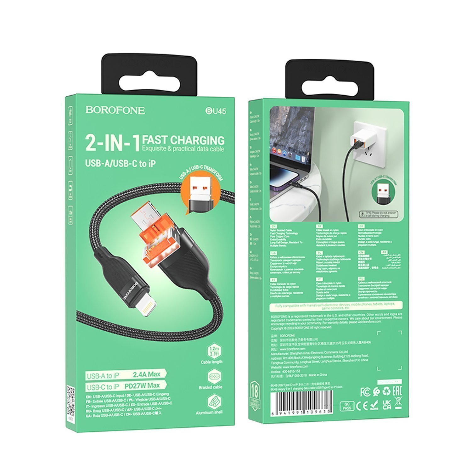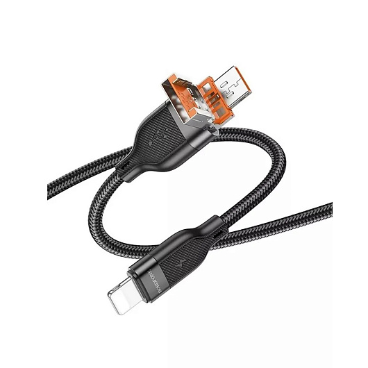 Кабель USB - Apple lightning Borofone BU45 Happy 2-in-1 27W 120см 2,4A (black)