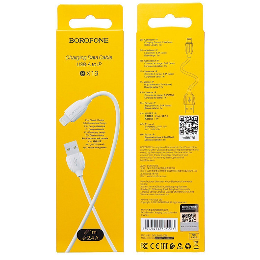 Кабель USB - Apple lightning Borofone BX19 12W 100см 2,4A (white)