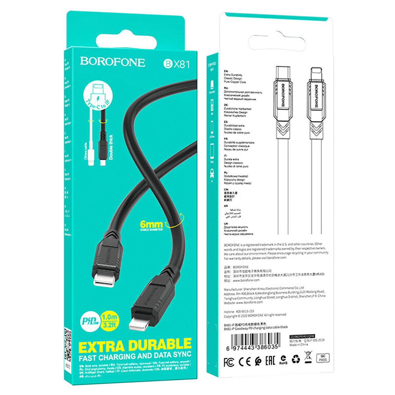 Кабель USB - Apple lightning Borofone BX81 12W 100см 2,4A (black)