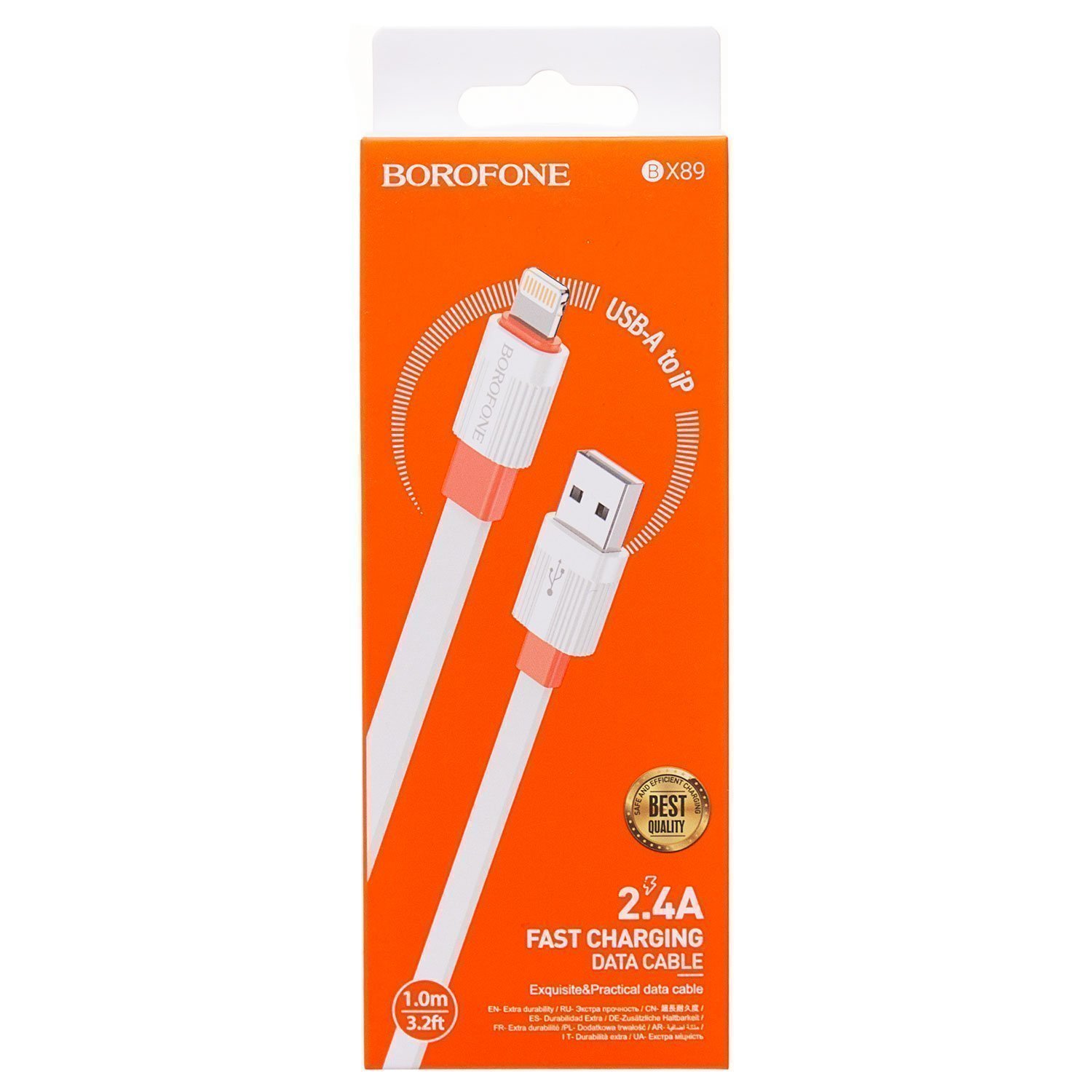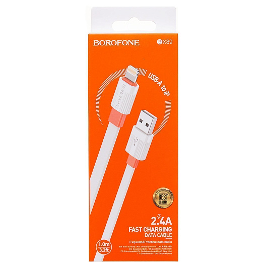 Кабель USB - Apple lightning Borofone BX89 12W 100см 2,4A (white/orange)