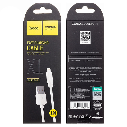 Кабель USB - Apple lightning Hoco X1 Rapid 12W 100см 2,4A (white)