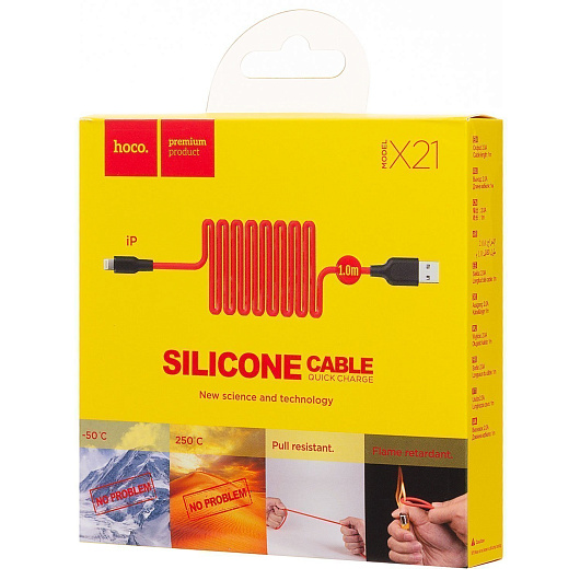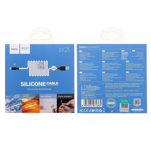 Кабель USB - Apple lightning Hoco X21 Silicone 10W 100см 2A (black/white)