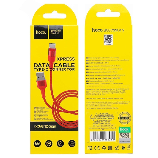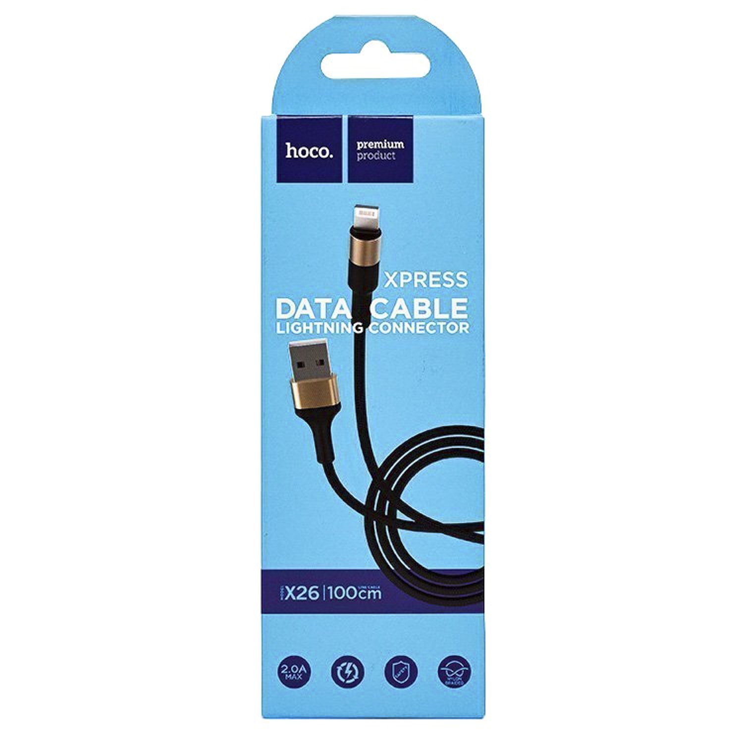 Кабель USB - Apple lightning Hoco X26 Xpress 12W 100см 2,4A (black/gold)