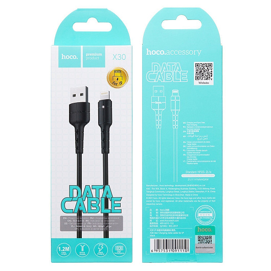 Кабель USB - Apple lightning Hoco X30 Star 10W 120см 2A (black)