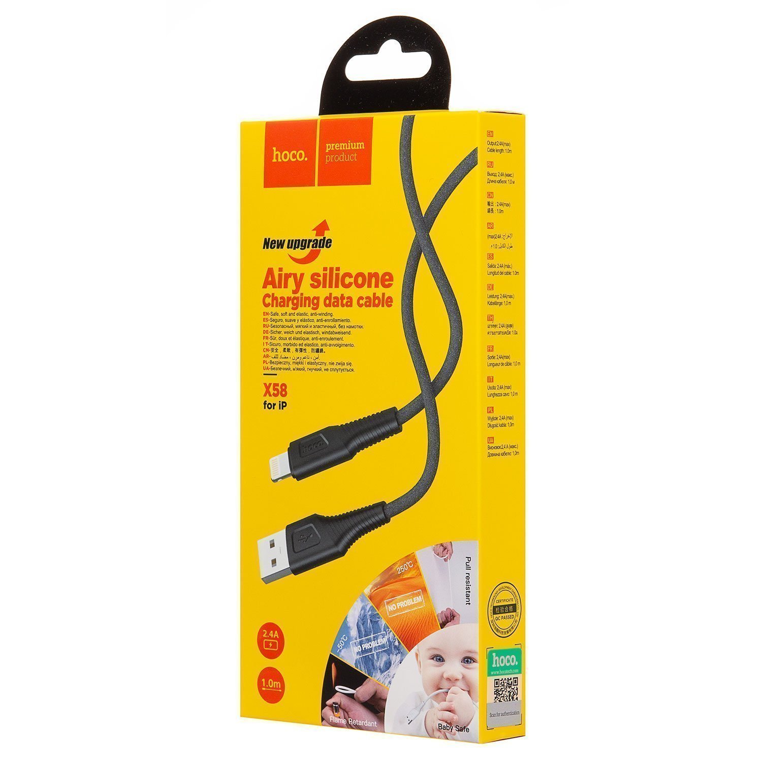 Кабель USB - Apple lightning Hoco X58 Airy silicone 12W 100см 2,4A (black)