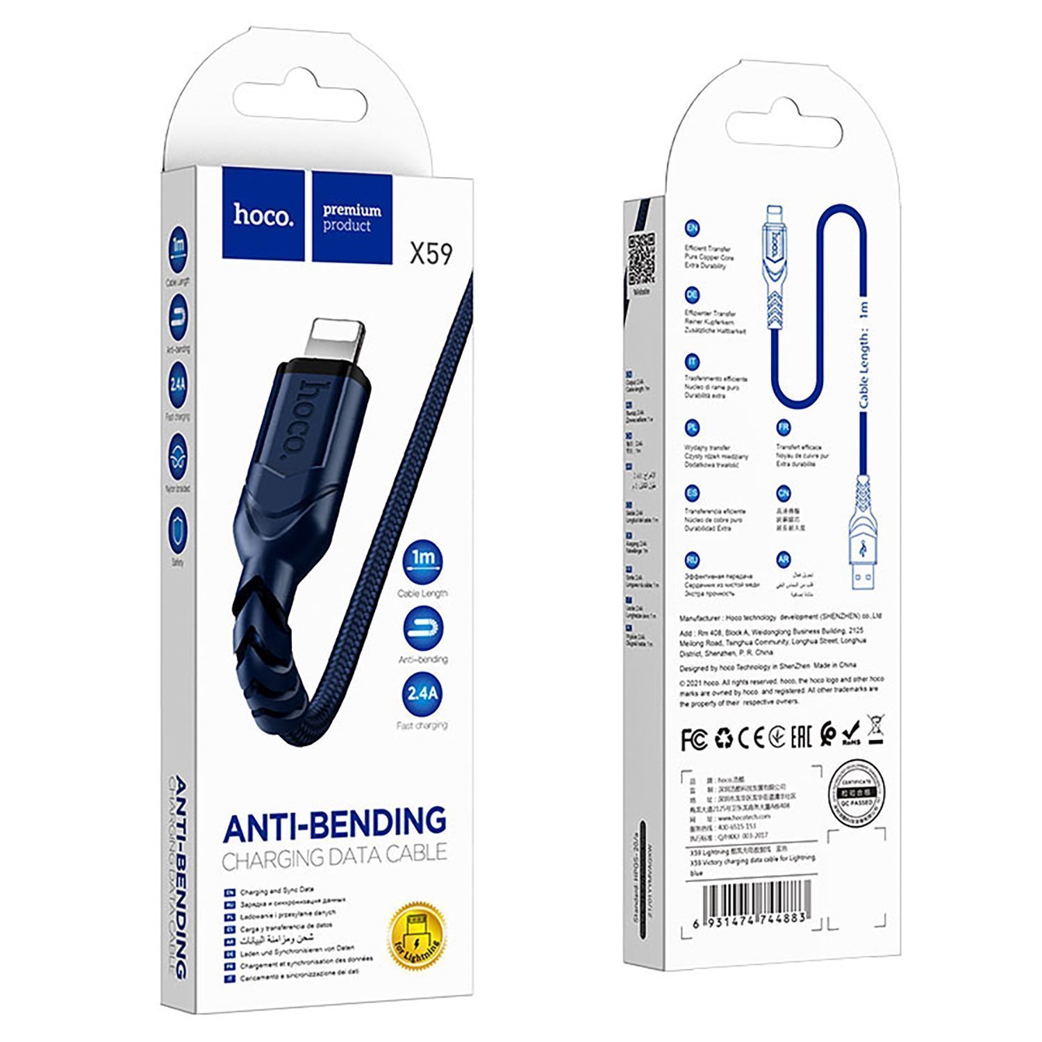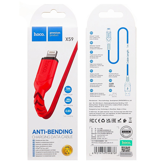 Кабель USB - Apple lightning Hoco X59 Victory PD 12W 100см 2,4A (blue)
