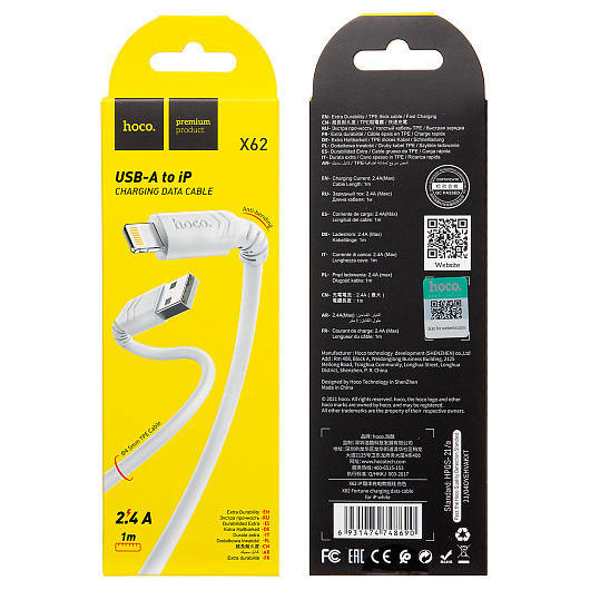 Кабель USB - Apple lightning Hoco X62 12W 100см 2,4A (white)