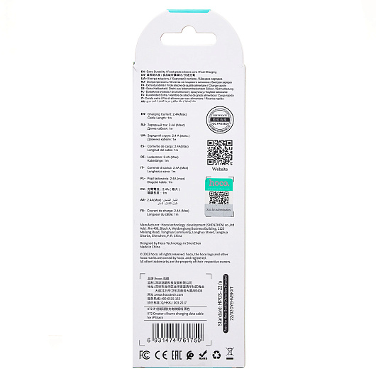 Кабель USB - Apple lightning Hoco X72 Creator 12W 100см 2,4A (black)