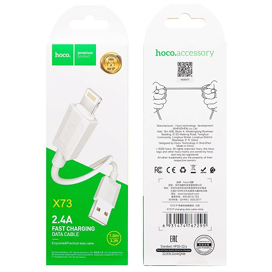 Кабель USB - Apple lightning Hoco X73 12W 100см 2,4A (black)