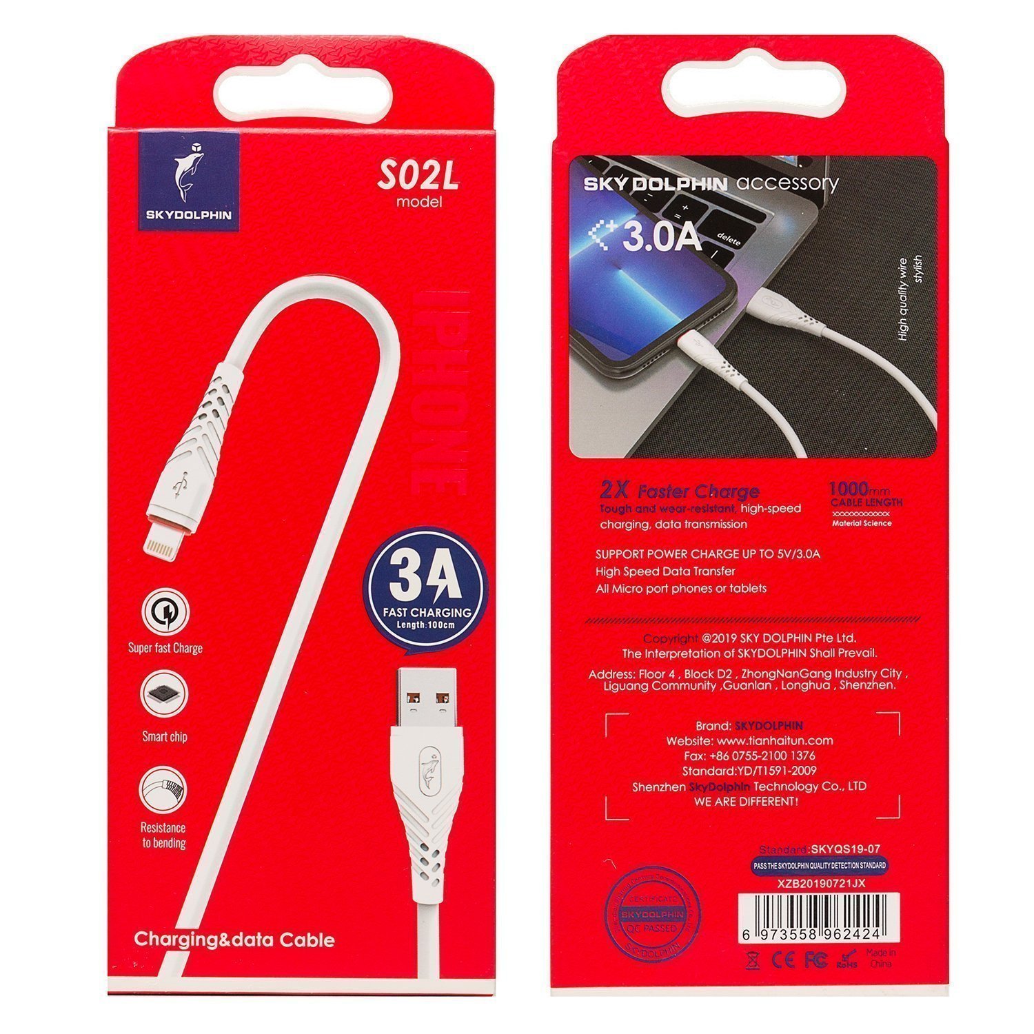 Кабель USB - Apple lightning SKYDOLPHIN S02L 15W 100см 3A (white)
