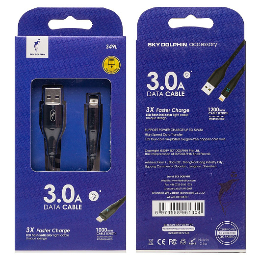 Кабель USB - Apple lightning SKYDOLPHIN S49L (повр. уп) 100см 3A (black)