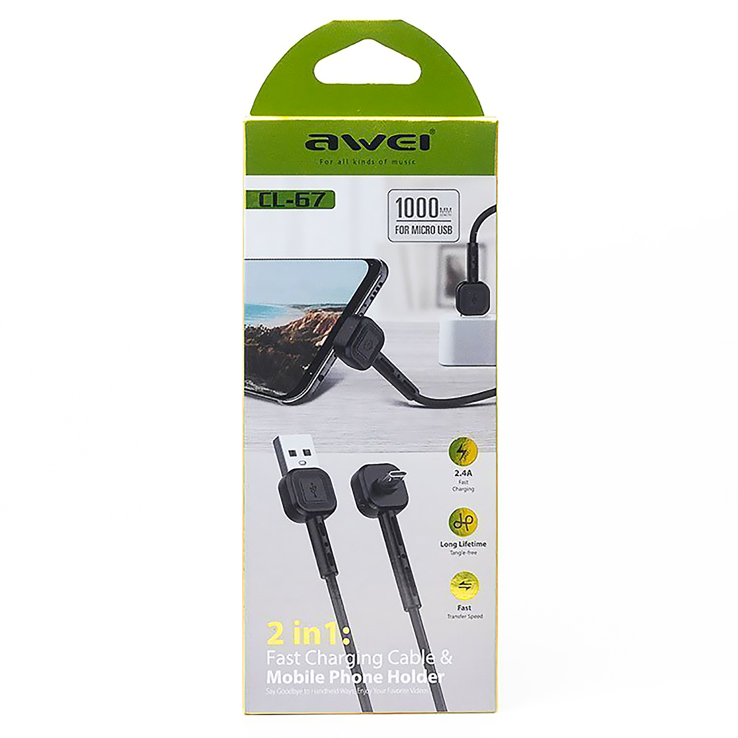 Кабель USB - micro USB Awei CL-67 12W 100см 2,4A (black)