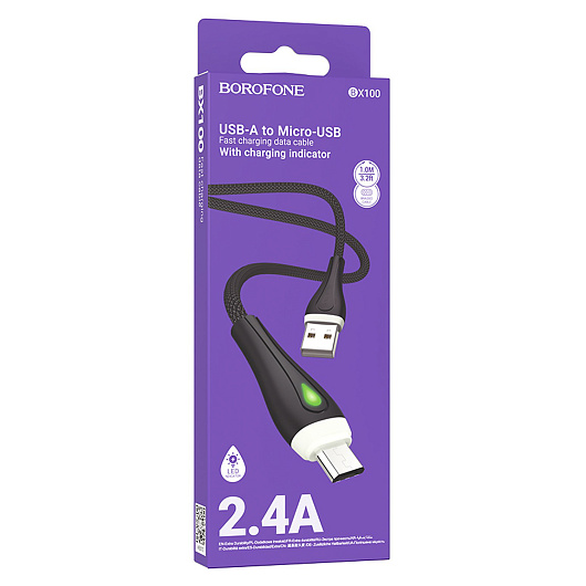 Кабель USB - micro USB Borofone BX100 Advantage 12W 100см 2,4A (black)