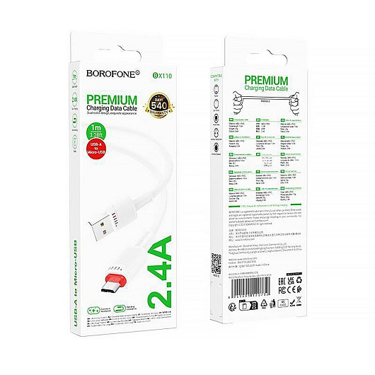 Кабель USB - micro USB Borofone BX110 Beneficio 12W 100см 2,4A (black)