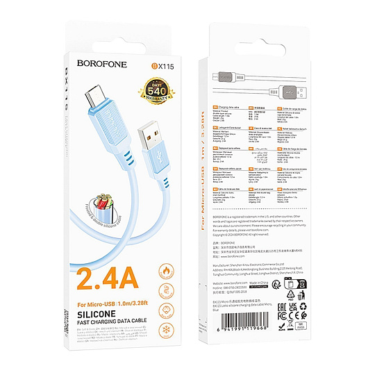 Кабель USB - micro USB Borofone BX115 Lotto 12W 100см 2,4A (blue)