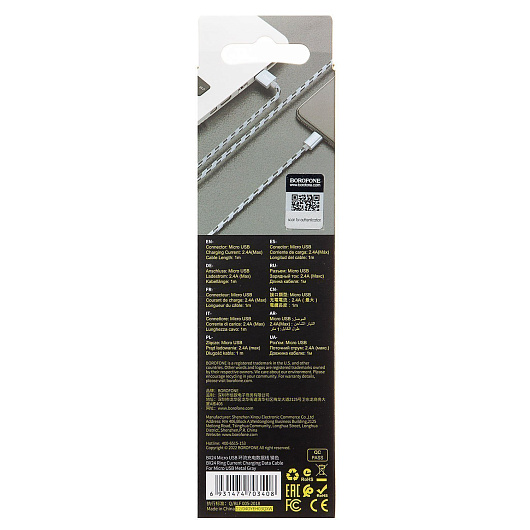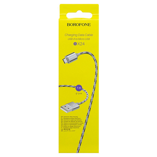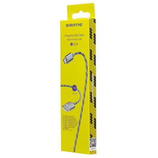 Кабель USB - micro USB Borofone BX24 Ring 12W 100см 2,4A (metal grey)