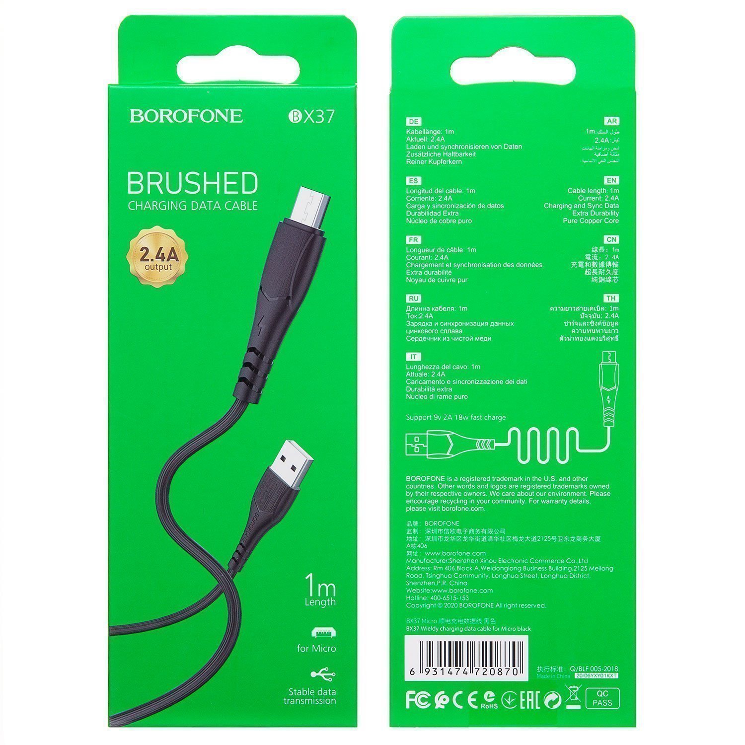 Кабель USB - micro USB Borofone BX37 Wieldy* 12W 100см 2,4A (black)