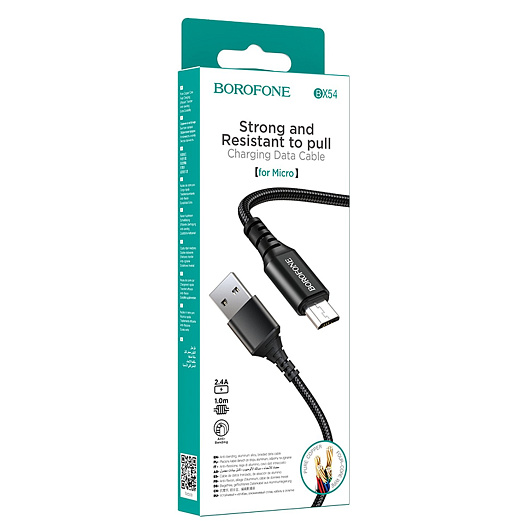 Кабель USB - micro USB Borofone BX54 Ultra bright 12W 100см 2,4A (black)
