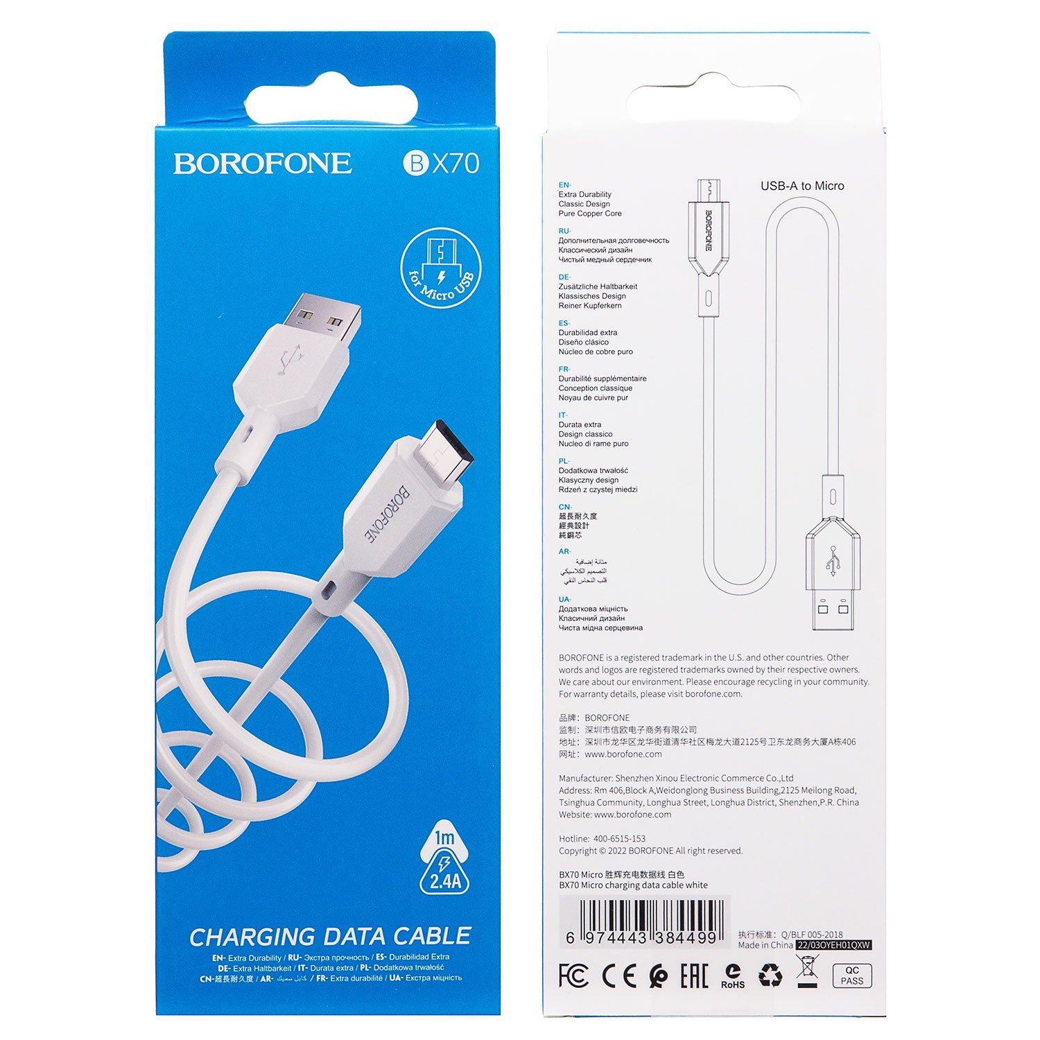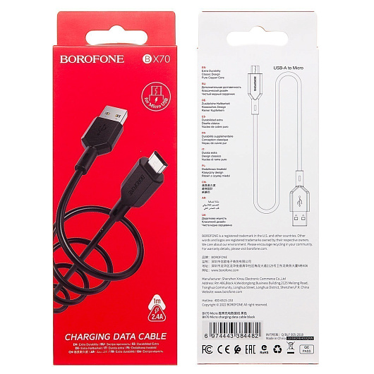 Кабель USB - micro USB Borofone BX70 12W 100см 2,4A (black)