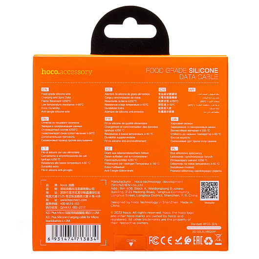 Кабель USB - micro USB Hoco X21 Plus (silicone) 12W 200см 2,4A (red/black)