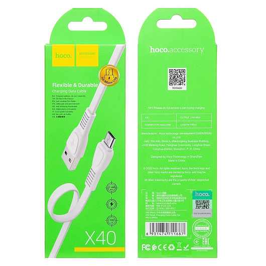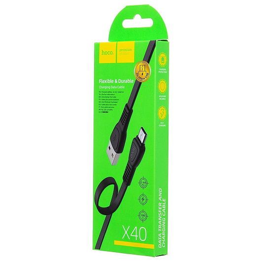 Кабель USB - micro USB Hoco X40 Noah Charging 12W 100см 2,4A (black)