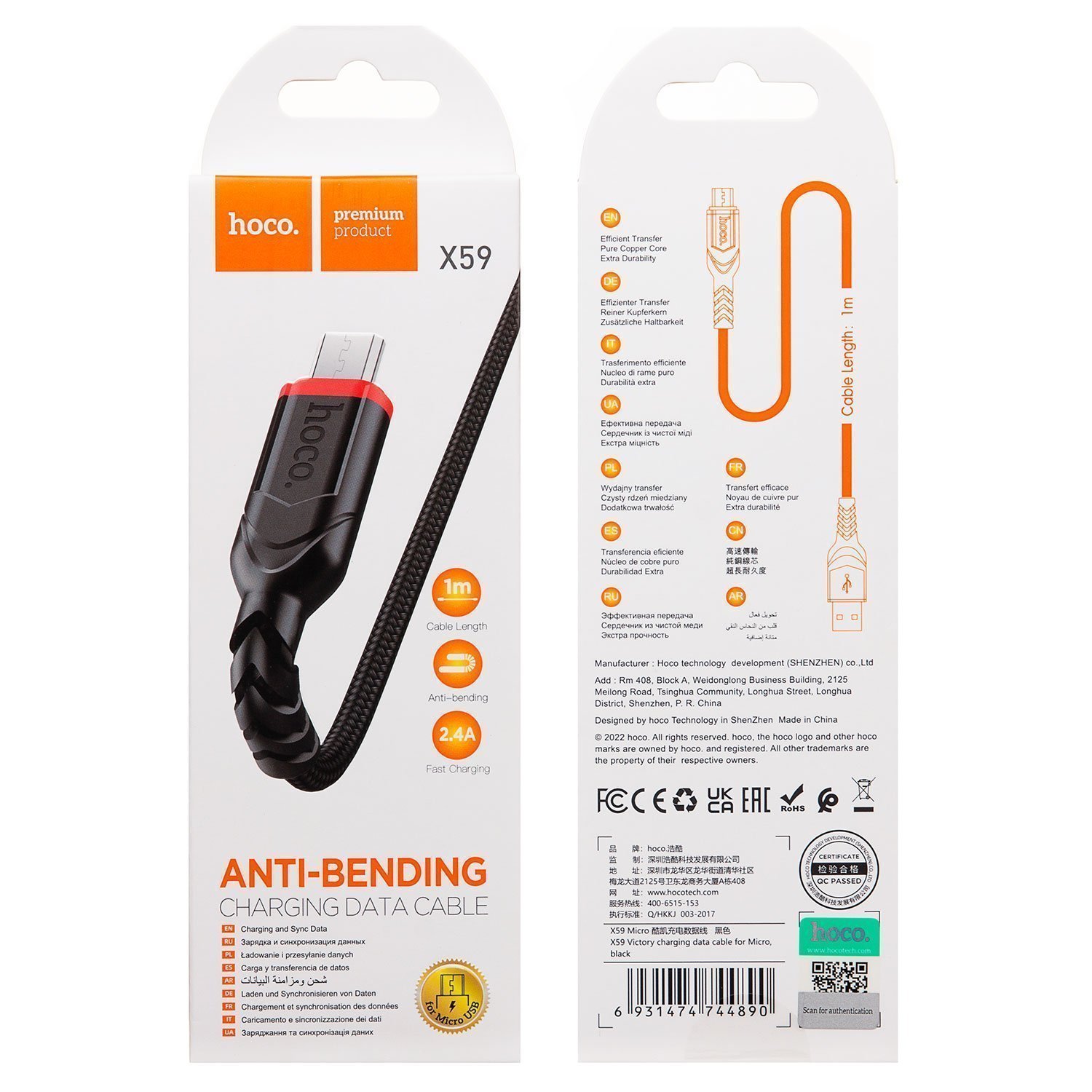 Кабель USB - micro USB Hoco X59 Victory PD 12W 100см 2,4A (black)