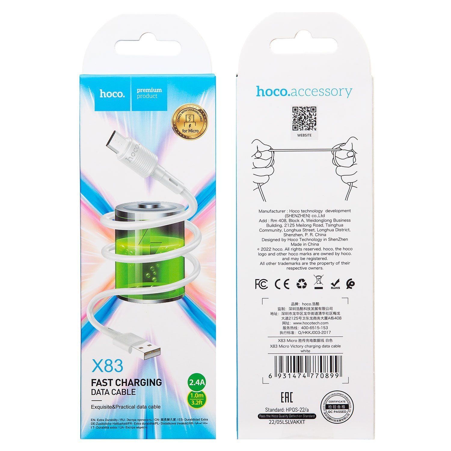 Кабель USB - micro USB Hoco X83 12W 100см 2,4A (black)