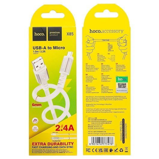 Кабель USB - micro USB Hoco X85 12W 100см 2,4A (black)