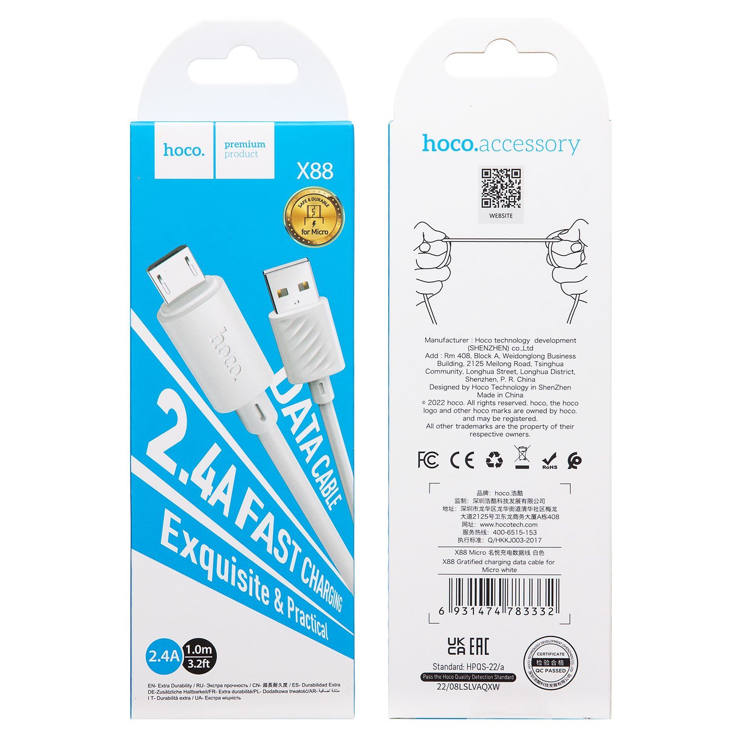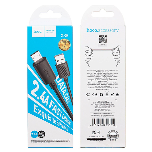 Кабель USB - micro USB Hoco X88 12W 100см 2,4A (black)