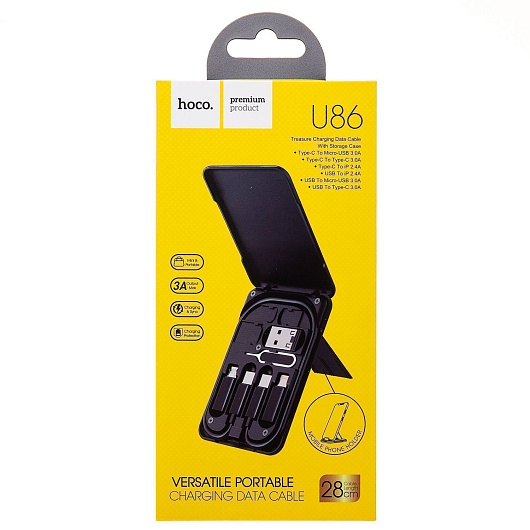 Кабель USB - Multi connector Hoco U86 Treasure Box 60W 25см 3A (black)