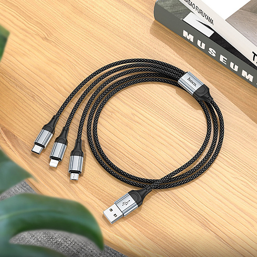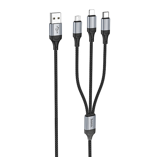 Кабель USB - Multi connector Hoco X102 3in1 12W 100см 2,4A (black)