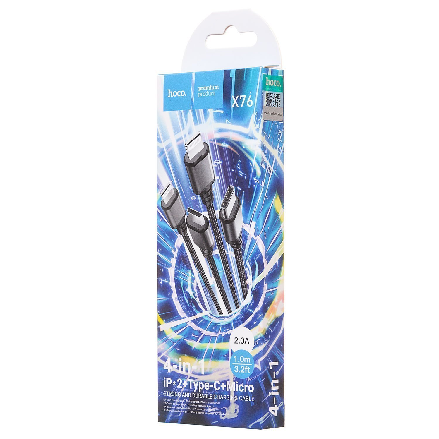 Кабель USB - Multi connector Hoco X76 4in1 10W 100см 2A (black)