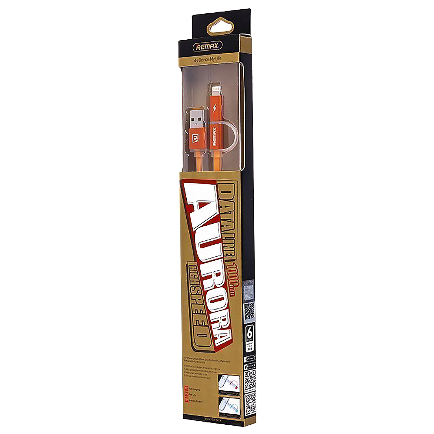 Кабель USB - Multi connector Remax RC-020t Aurora 12W 100см 2,4A (orange)