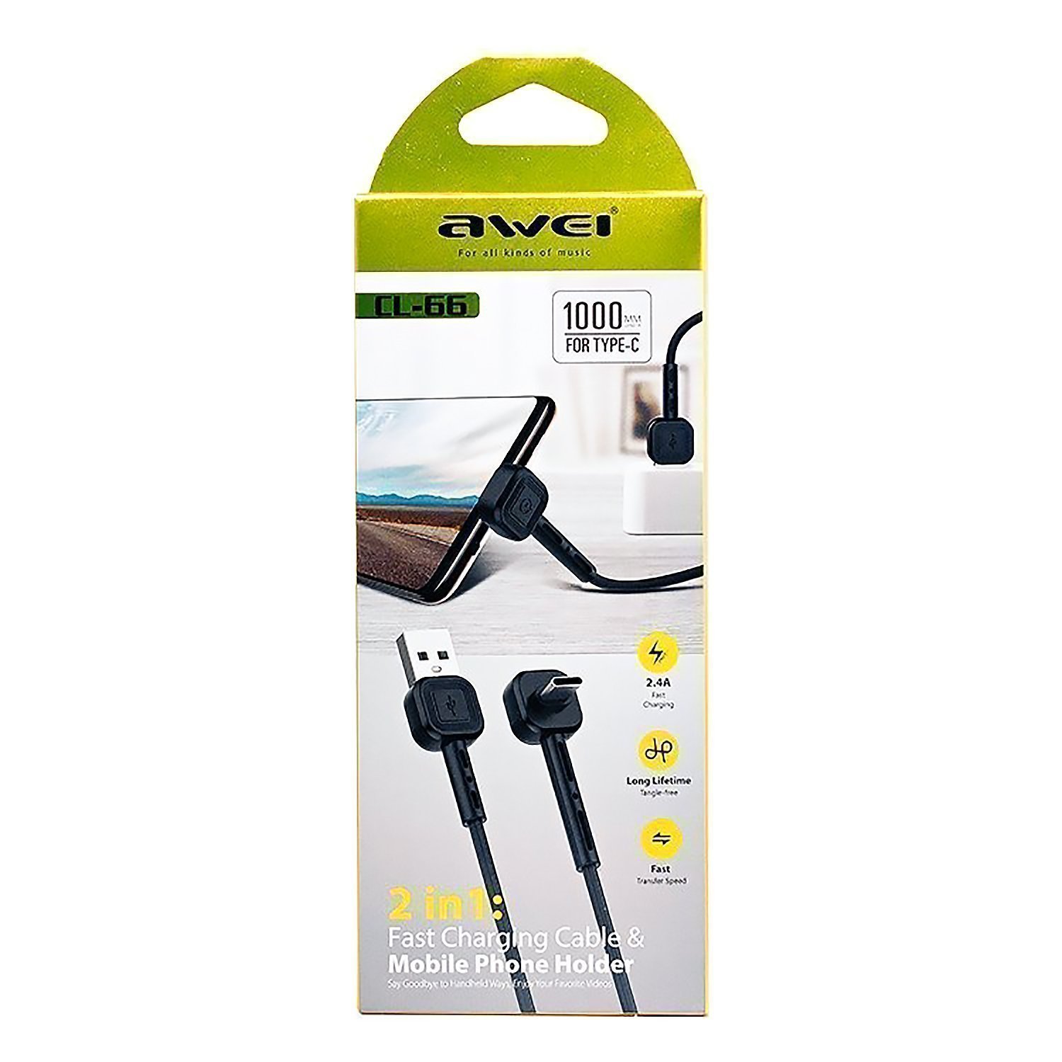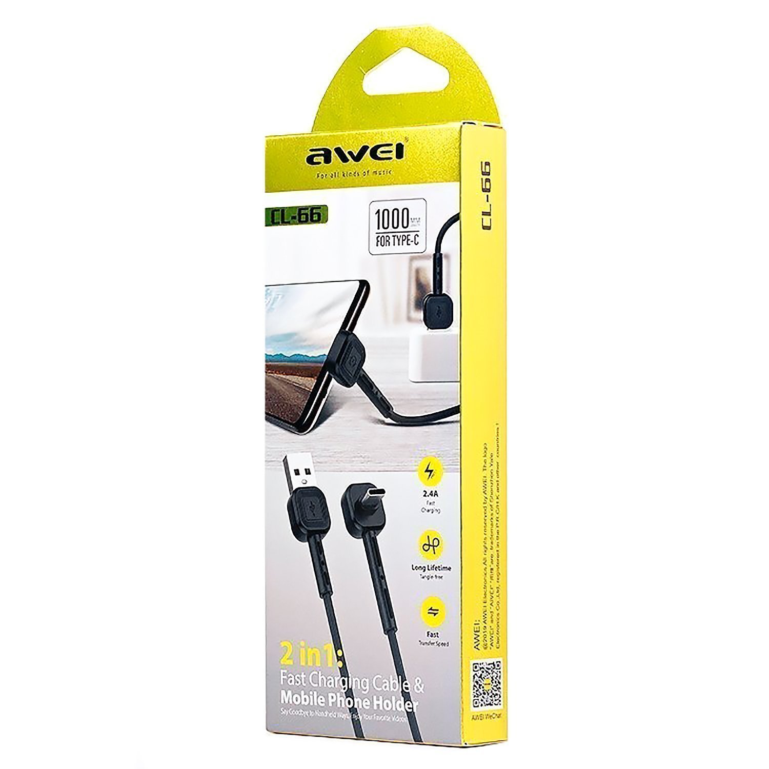 Кабель USB - Type-C Awei CL-66 12W 100см 2,4A (white)