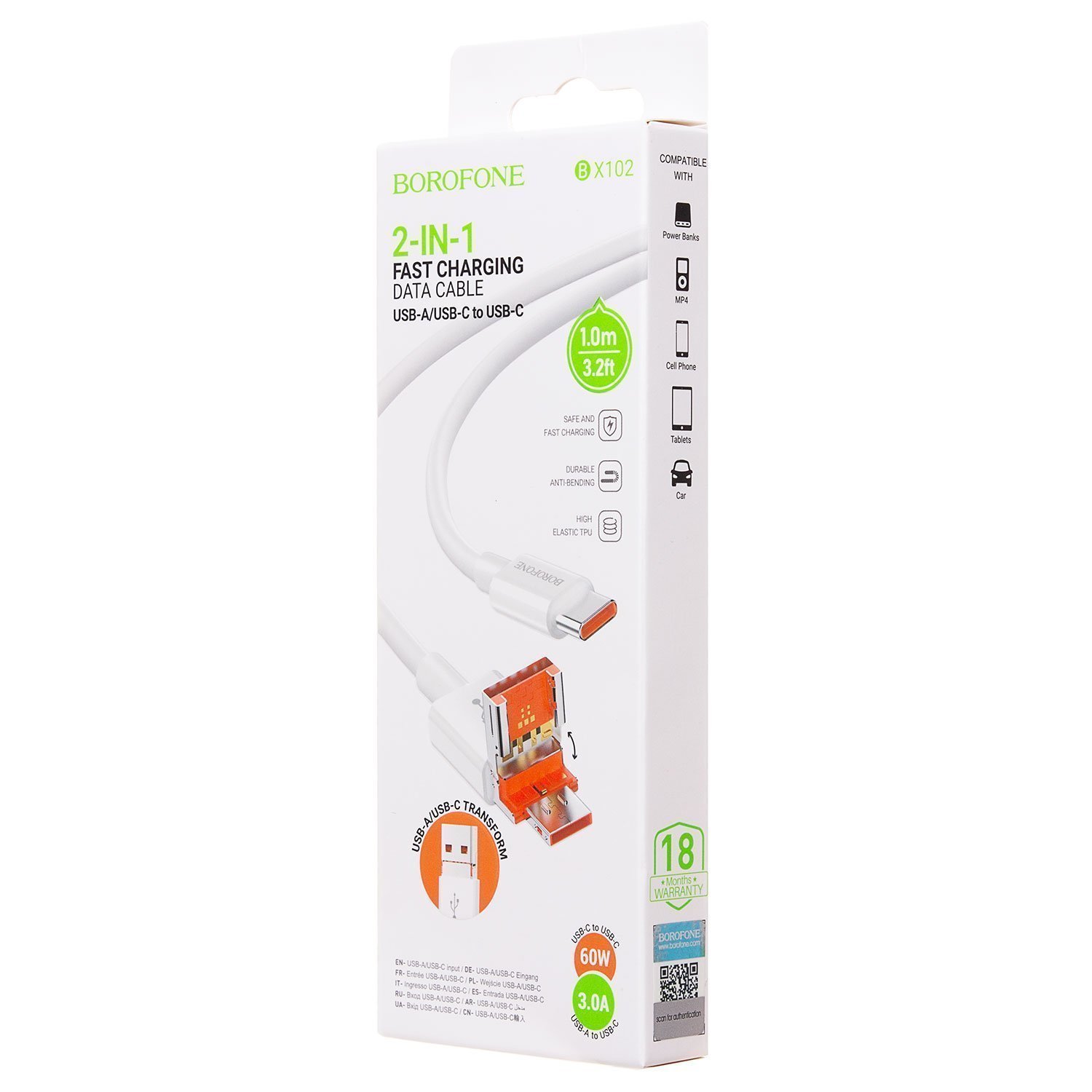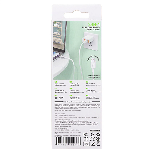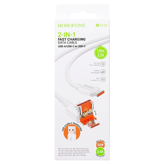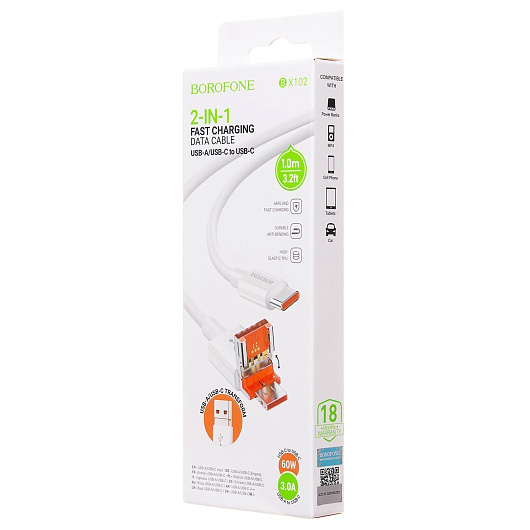Кабель USB - Type-C Borofone BX102 Winner 60W 100см 3A (white)