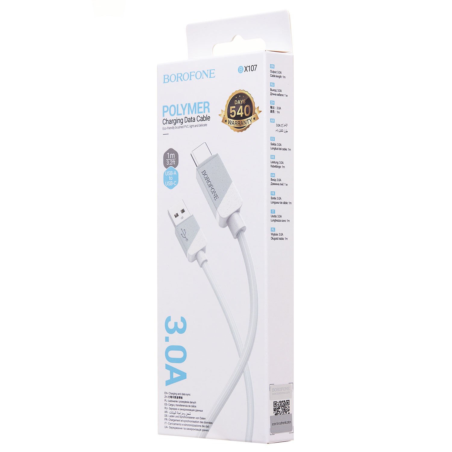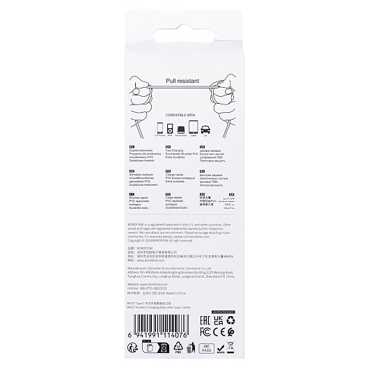 Кабель USB - Type-C Borofone BX107 18W 100см 3A (white)