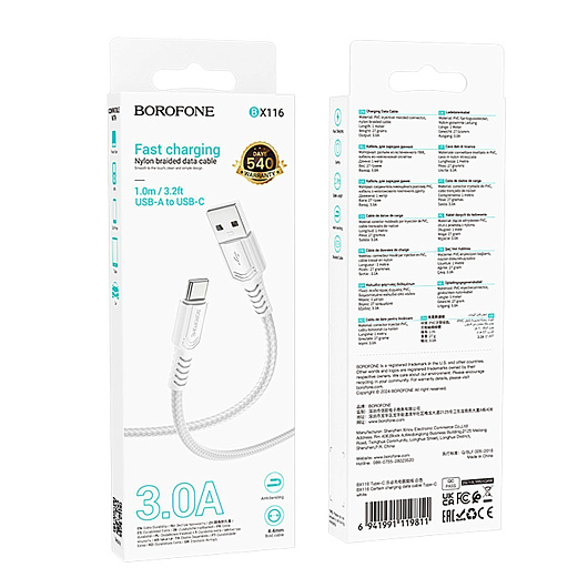 Кабель USB - Type-C Borofone BX116 Certain 18W 100см 3A (black)