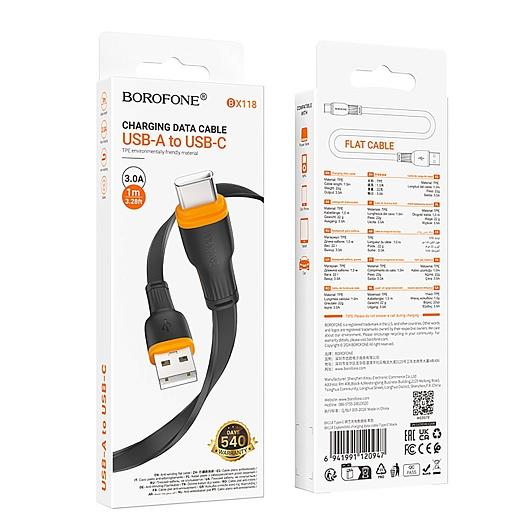 Кабель USB - Type-C Borofone BX118 Esplendido 12W 100см 2,4A (black)