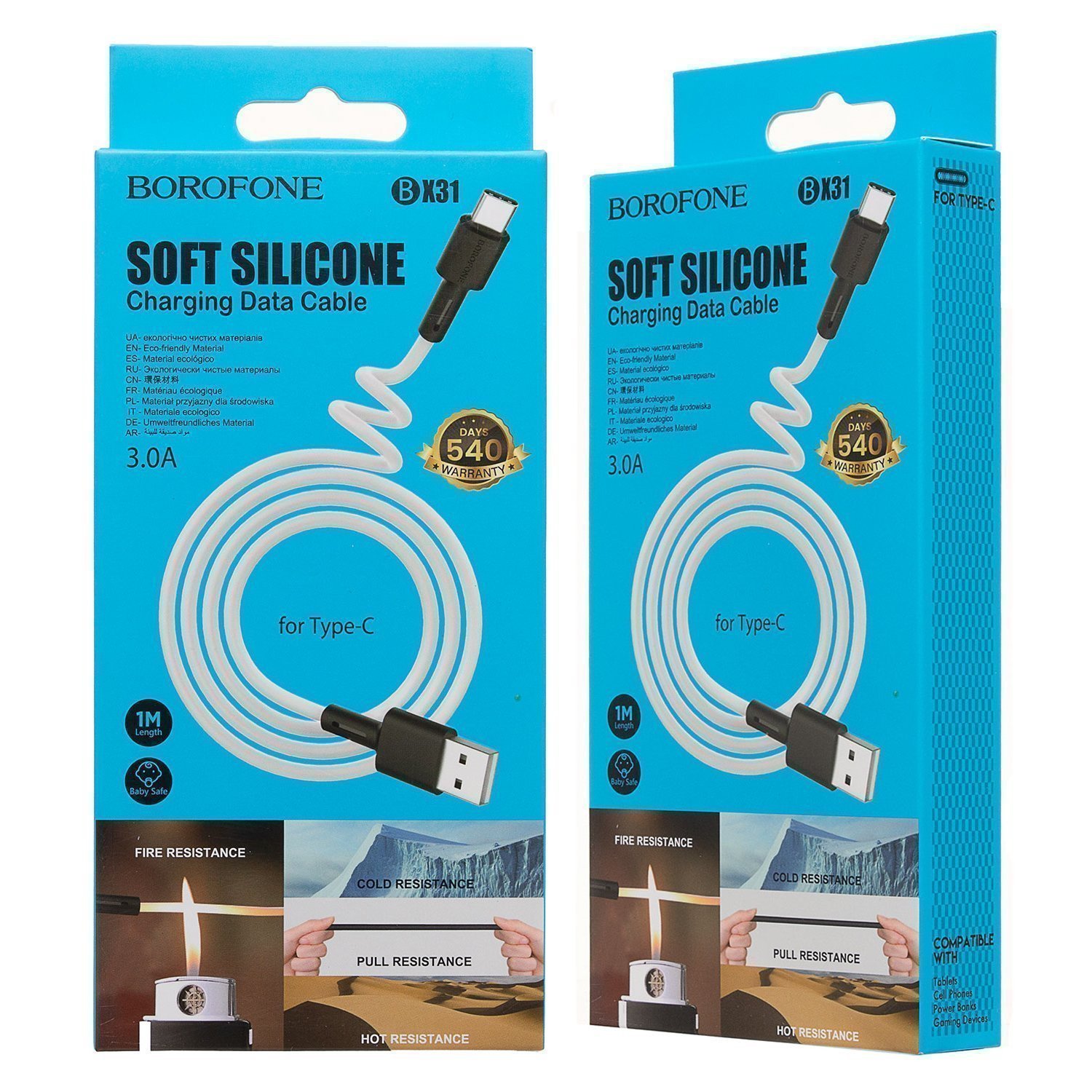 Кабель USB - Type-C Borofone BX31 18W 100см 3A (white)
