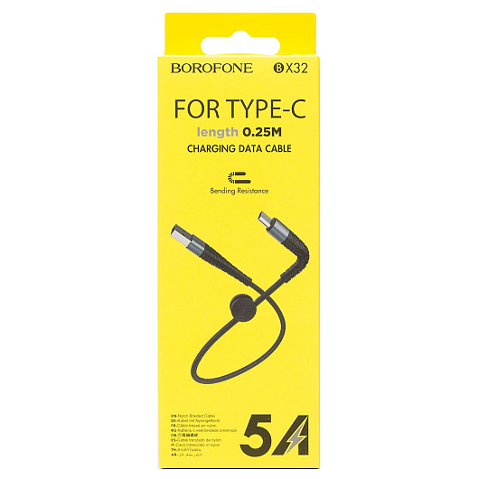 Кабель USB - Type-C Borofone BX32 Munificent 18W 25см 3A (black)