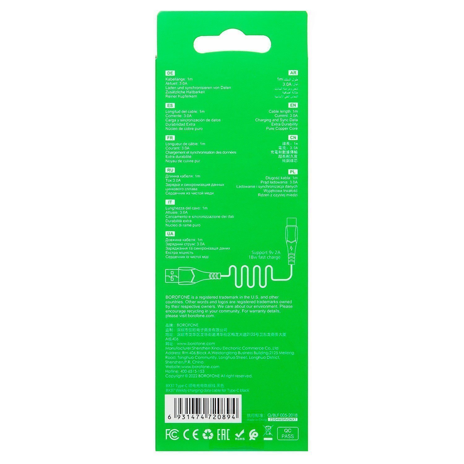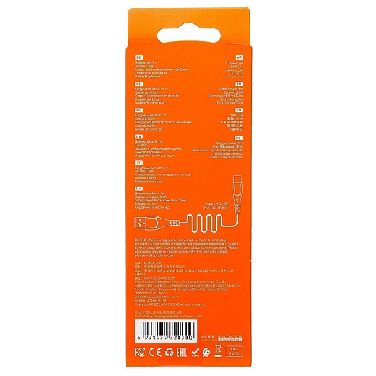 Кабель USB - Type-C Borofone BX37 Wieldy* 18W 100см 3A (white)