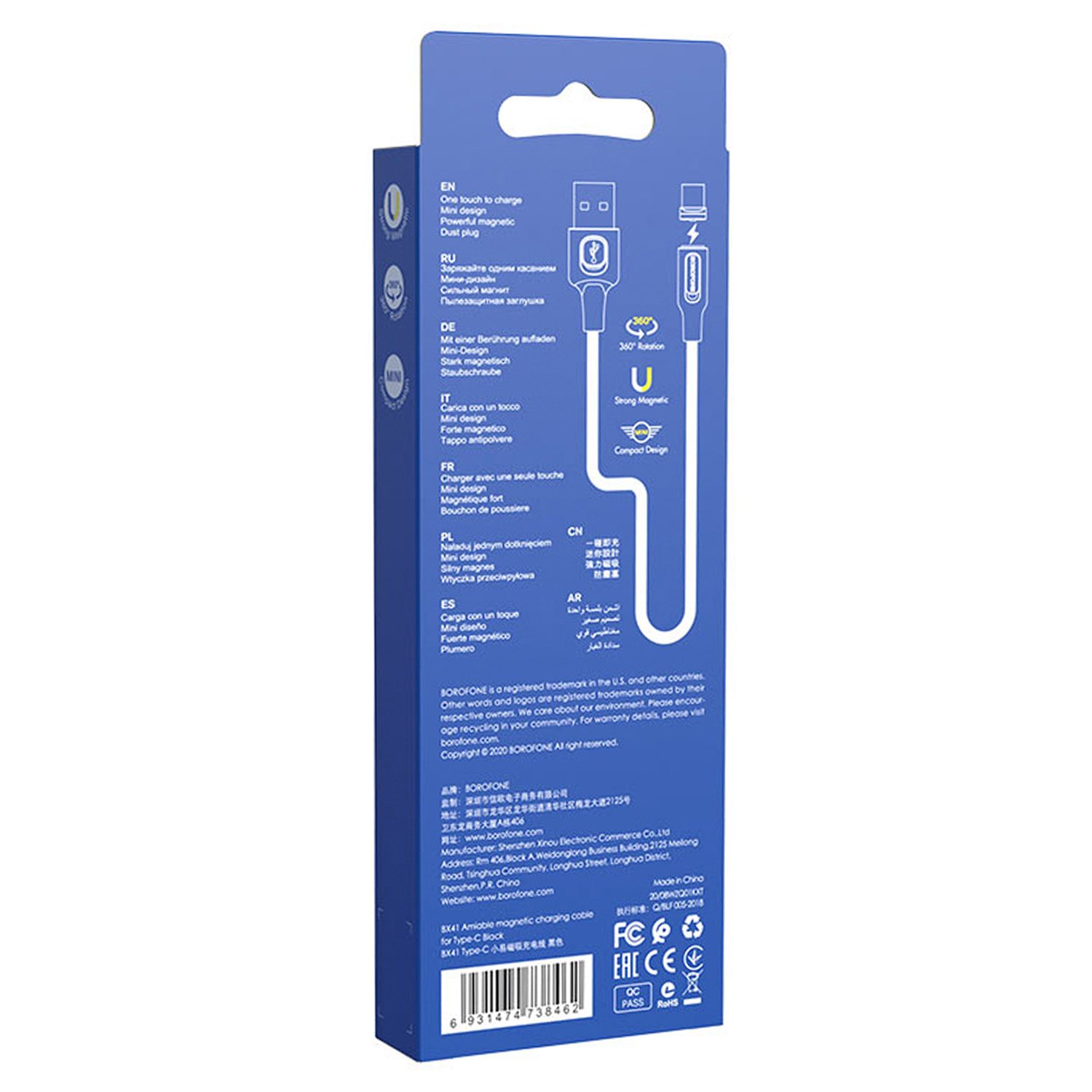 Кабель USB - Type-C Borofone BX41 Amiable магнитный 12W 100см 2,4A (black)